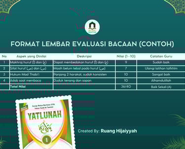 Dalam metode Yatlunah, evaluasi bukan dimaksudkan untuk menilai “siapa yang bisa cepat membaca”, melainkan sejauh mana murid telah membaca dengan benar sesuai kaidah.
