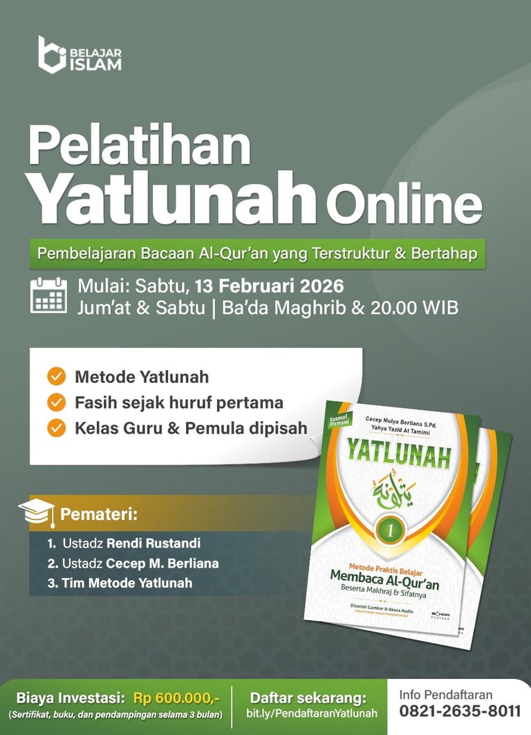 Pelatihan Guru Yatlunah bukan sekadar program peningkatan kompetensi, tetapi ikhtiar bersama untuk menjaga kemurnian bacaan Al-Qur’an sejak generasi awal. Kami berharap program ini menjadi ruang belajar yang menenangkan, menguatkan, dan memberkahi para guru dalam mengemban amanah mulia mengajarkan Kalamullah.